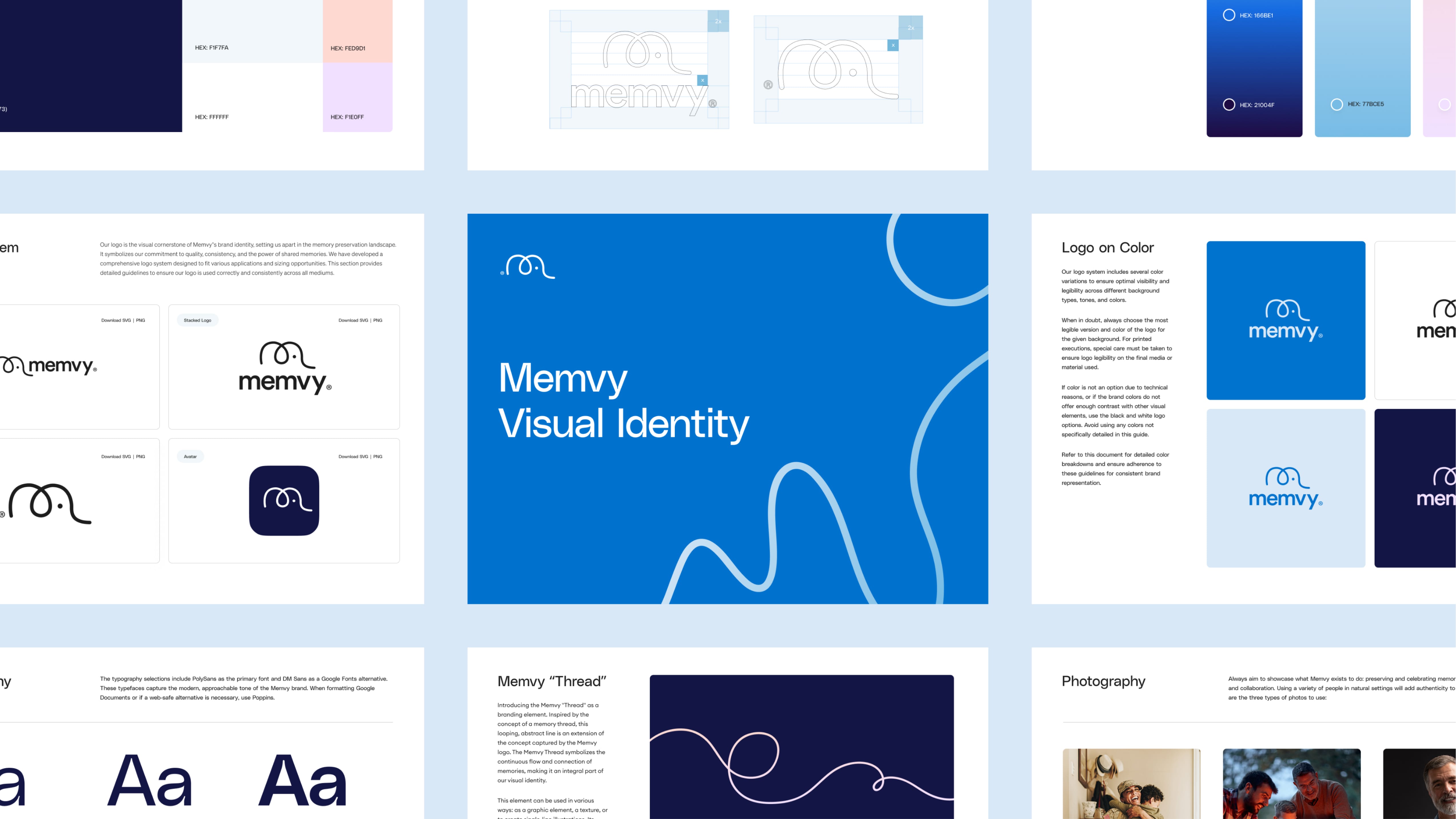 They came to us to first create a brand that emphasized their mission of preserving and celebrating memories of shared experiences through connection and collaboration. We developed the Memvy "thread"— symbolizing the connective, continuous flow of memories, making it an anchor of the visual identity. The iconic elephant logo symbolizes the notion that elephants never forget. The brand identity was then applied to an app and website: an innovative, interactive, memory preserving platform to celebrate the lives of loved ones or preserve personal shared experiences.