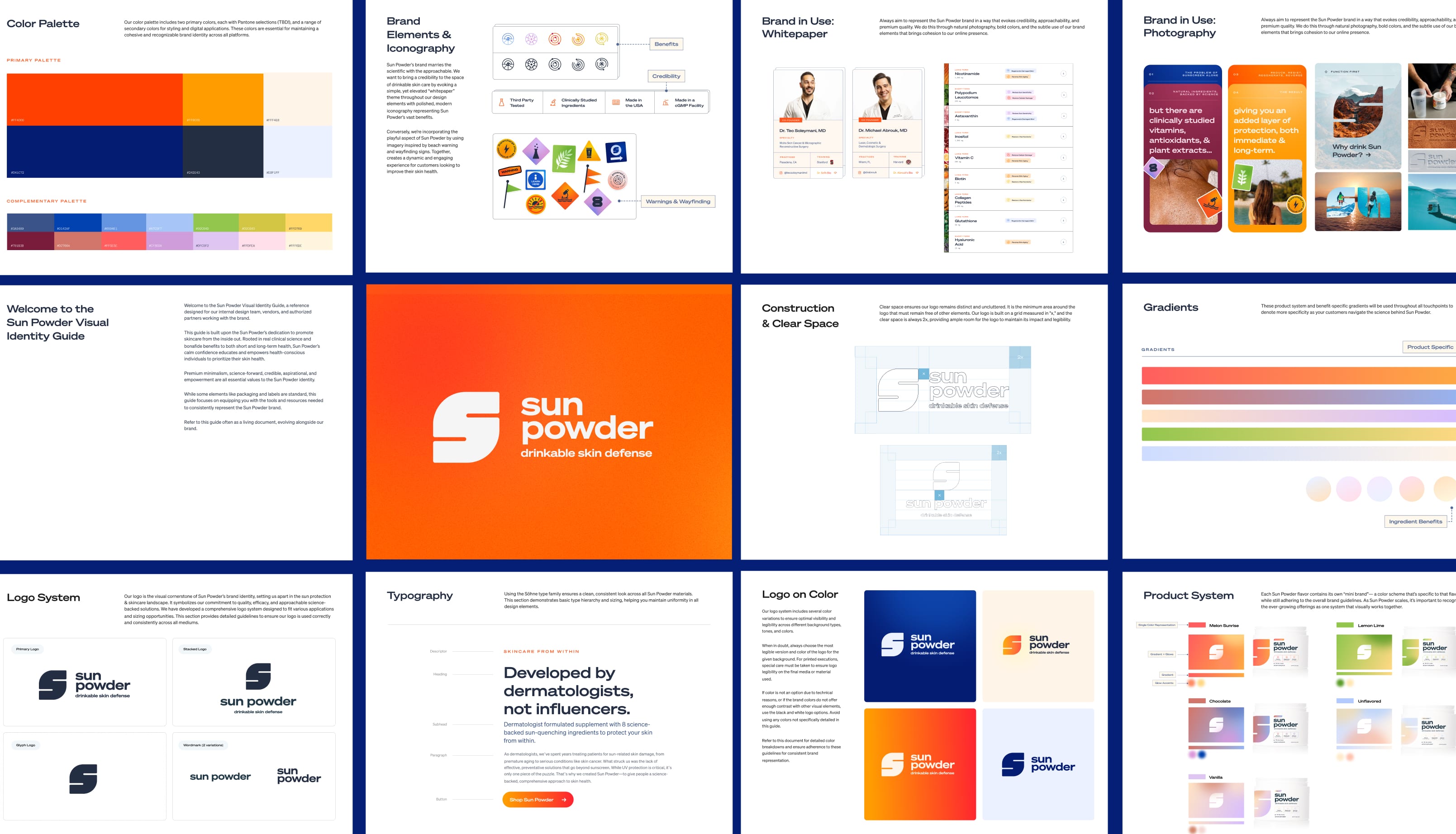 Our strategic execution positioned Sun Powder as a leader in ingestible skincare, reflecting a premium, science-forward, and empowering ethos.The result was a cohesive brand system, complete with unique identities for each product flavor, and a redesigned, high-converting website.